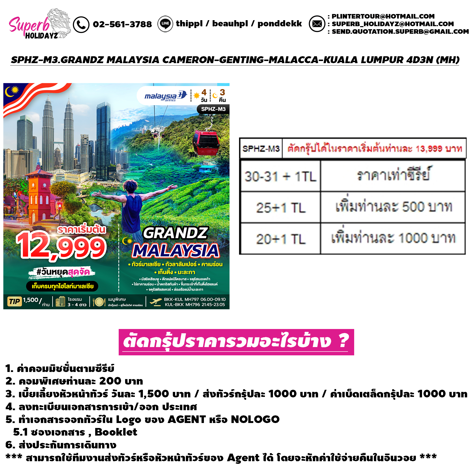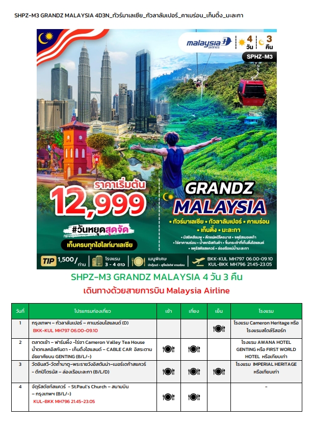 | PDF File: https://superbholidayz.com/superb/catalog/file1SPHZ-M3.GRANDZ_MALAYSIA_CAMERON-GENTING-MALACCA-KUALALUMPUR_4D3N(MH)AUG25-APR26-ทัวร์มาเลเซีย_กัวลาลัมเปอร์_คาเมร่อน_เก็นติ้ง_มะละกา.pdf จองทัวร์หน้าเว็บได้ที่นี่ >> https://superbholidayz.com/superb/catalognewmap.php#tabs-2512 |
