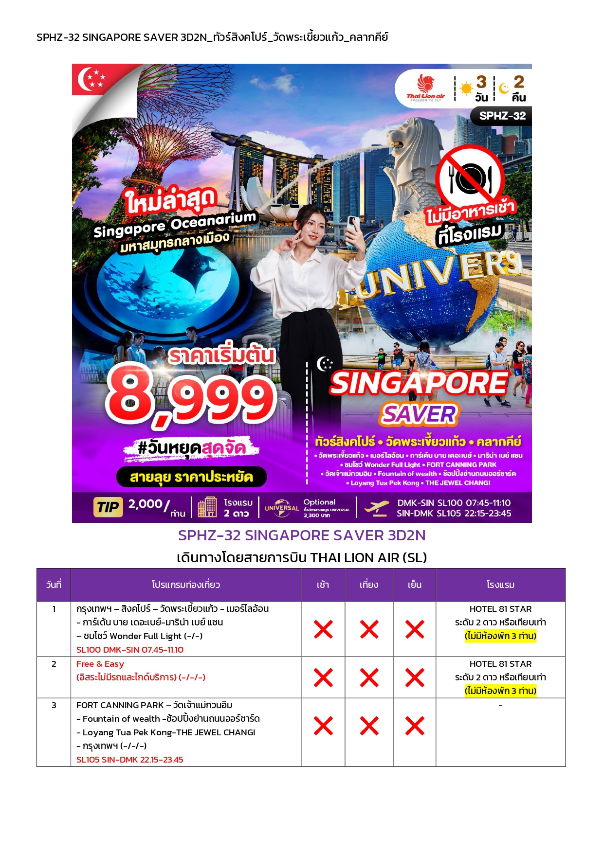 | PDF File: https://superbholidayz.com/superb/catalog/file1SPHZ-32_SINGAPORE_SAVER_3D2N(SL)AUG_MAR_26_ทัวร์สิงคโปร์_วัดพระเขี้ยวแก้ว_คลากคีย์.pdf จองทัวร์หน้าเว็บได้ที่นี่ >> https://superbholidayz.com/superb/catalognewmap.php#tabs-2781 |