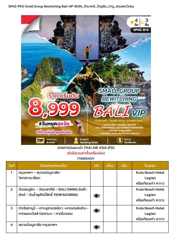 | SPHZ-B18- Bewitching Bali VIP Small Group 4 DAY (FD) NOV 25 - JUN 26 |