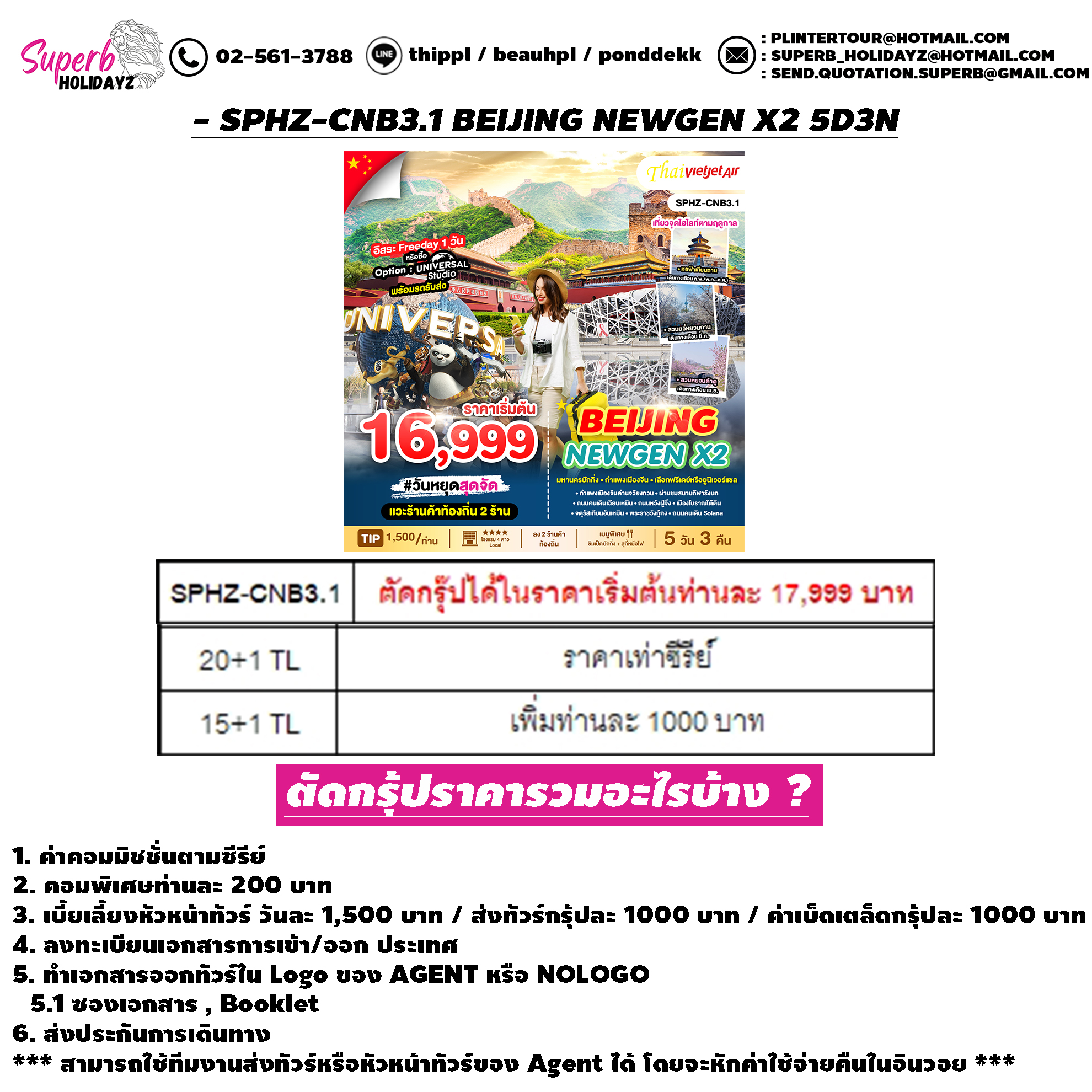| SPHZ-CNB3.1 BEIJING NEWGEN X2 5D3N OCT 25 - MAR 26 ลง2ร้าน |