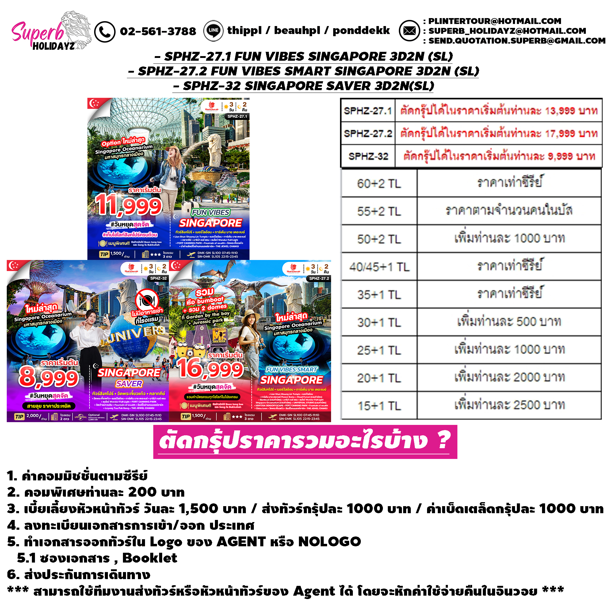 | SPHZ-27.2 FUN VIBES SMART SINGAPORE 3D2N (SL) OCT 2025 - APR 2026 รวมค่าบัตร |
