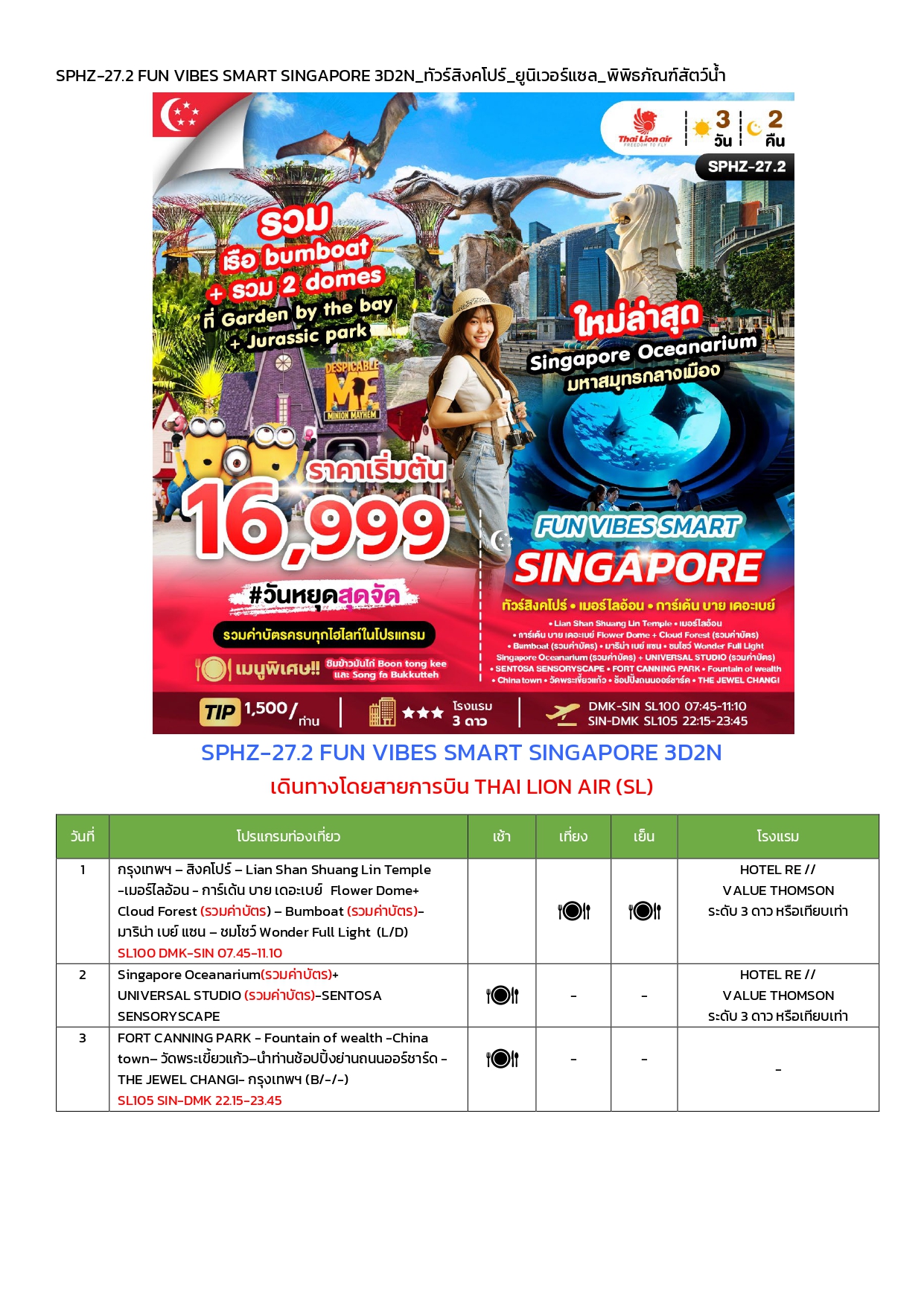 | PDF File: https://superbholidayz.com/superb/catalog/file1SPHZ-27.2_FUN_VIBES_SMART_SINGAPORE_3D2N_(SL)_OCT_25_-APR_26_ทัวร์สิงคโปร์_ยูนิเวอร์แซล_พิพิธภัณฑ์สัตว์น้ำ.pdf จองทัวร์หน้าเว็บได้ที่นี่ >> https://superbholidayz.com/superb/catalognewmap.php#tabs-2898 |
